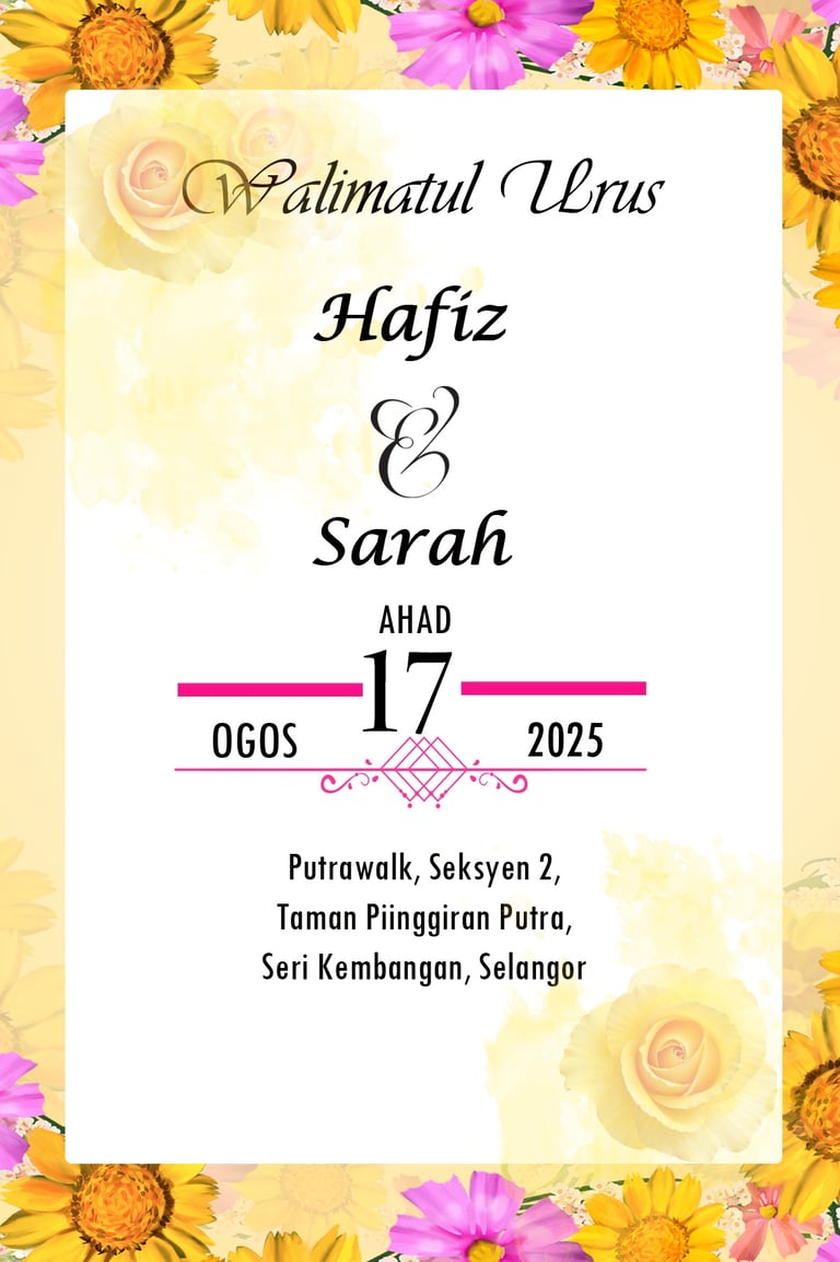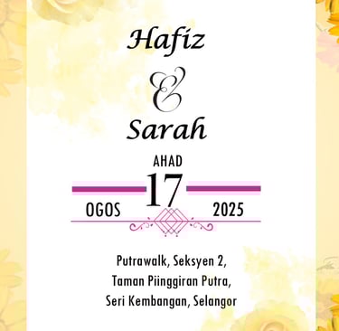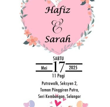 Terdapat pelbagai corak dan design kad undangan kahwin atau kad jemputan kahwin yang menarik untuk anda pilih bersesuaian dengan tema perkahwinan anda. Dari pilihan tona warna lembut sehingga kepada pilihan tona warna yang terang dan menarik, serta corak floral yang eksklusif dan elegan sudah tentu menjadi ingatan para tetamu untuk menyaksikan hari bahagia anda.